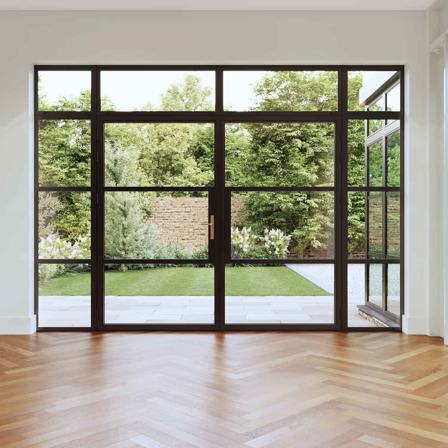 These aluminium heritage doors are designed for a modern aesthetic, providing excellent views and lightweight performance.